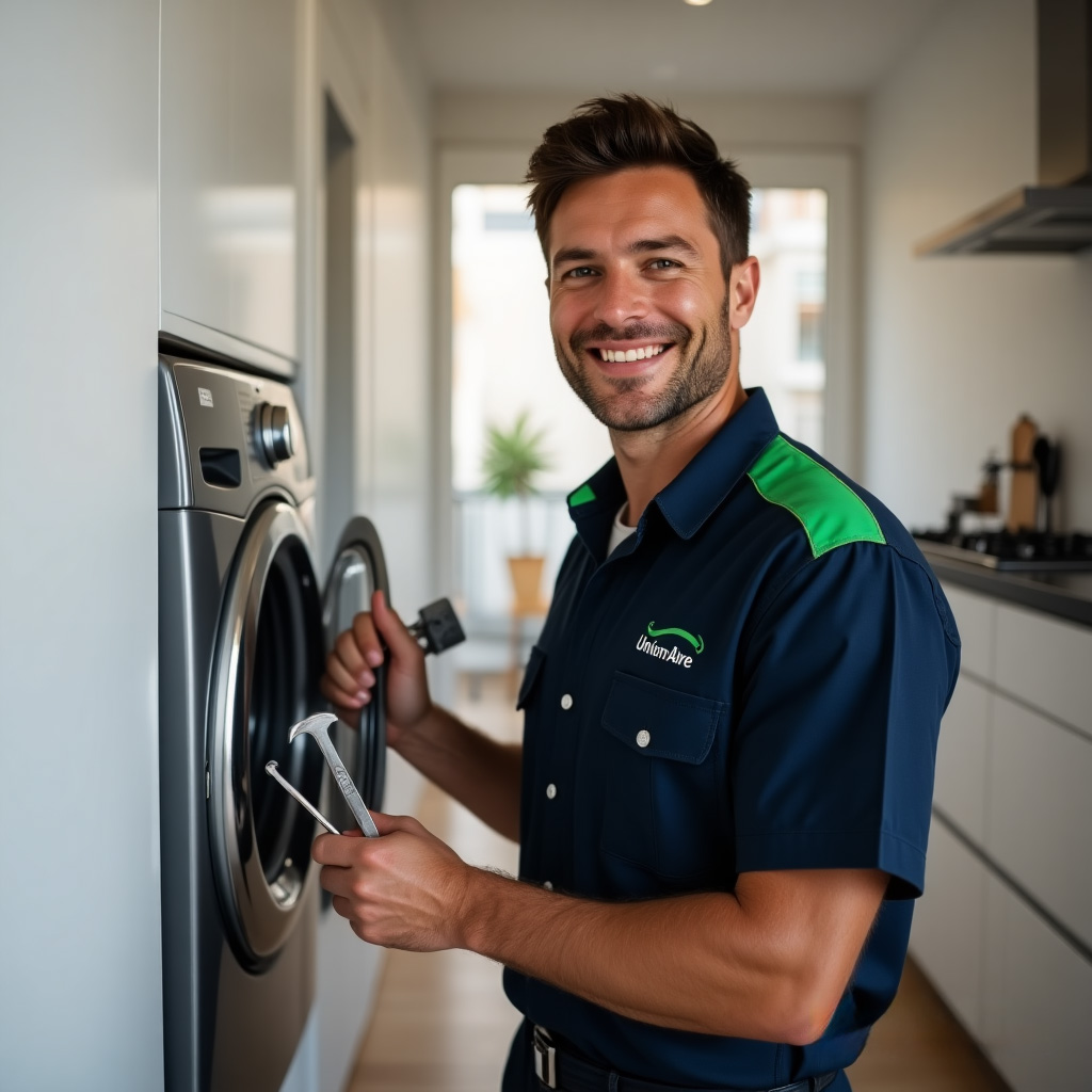 نوفر حلول صيانة فورية لغسالات يونيون اير عند حدوث أعطال مفاجئة، تشمل الفحص الدقيق والإصلاح داخل المنزل